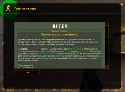 say rules- при активации данной команды игроком открывается мотд окно c правилами сервера