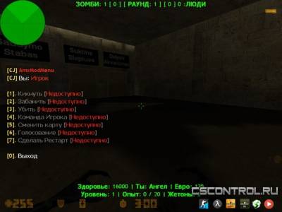 Данное меню собрано по частям, из каждого плагина вырезан код и в итоге получился такой вот AmxModMenu. По скриншоту можно заметить что на смену карты и голосование стоит ограничение в 20 минут.